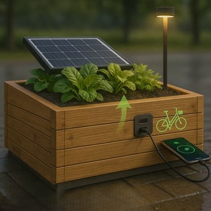 Jede Einheit kann mit einem Solarpanel ausgestattet werden, das LED-Leuchten, Umweltsensoren und sogar USB-Ladestationen für Handys und E-Bikes mit sauberer Energie versorgt – kabellos, werkzeuglos und mit sofortigem Nutzen für Mensch und Umwelt.