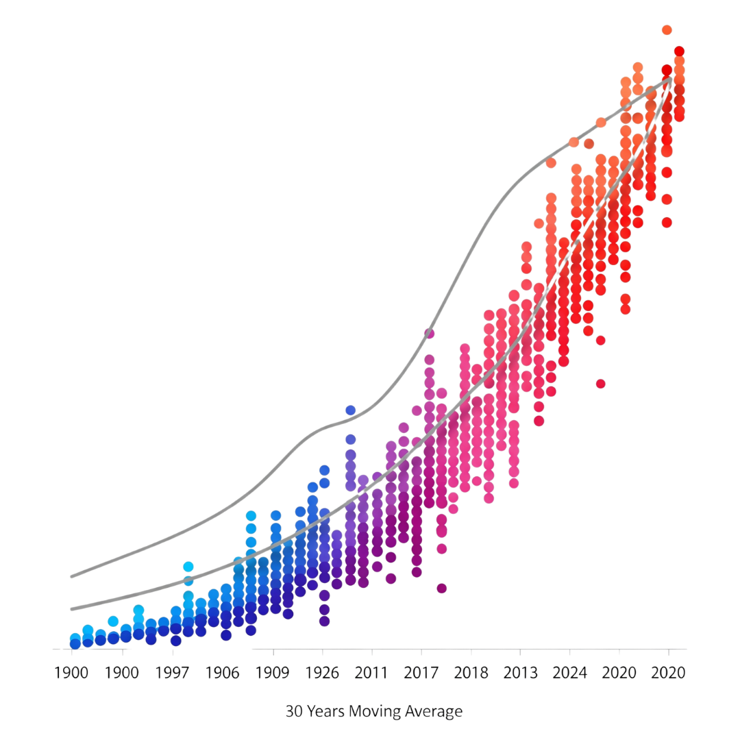 32 Tage mit Temperaturen über 30 °C pro Jahr